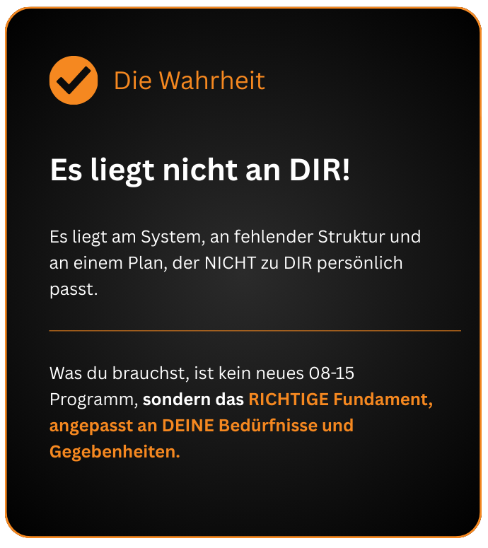 5 Bausteine. 1 System. Alles, was du für nachhaltigen Erfolg brauchst. Aufeinander abgestimmt und in deinen persönlichen Alltag integrierbar.